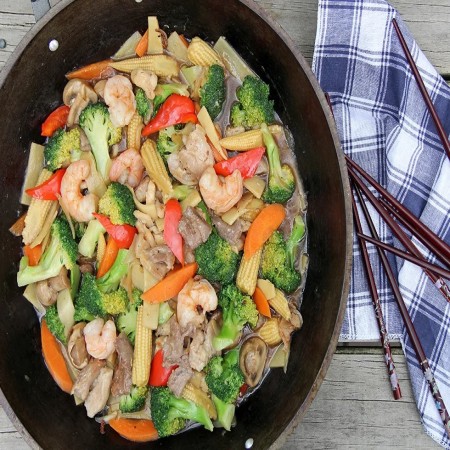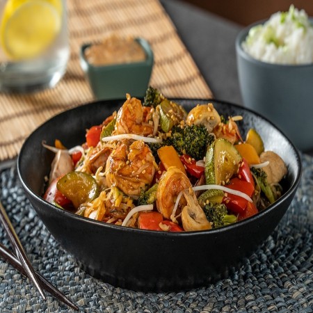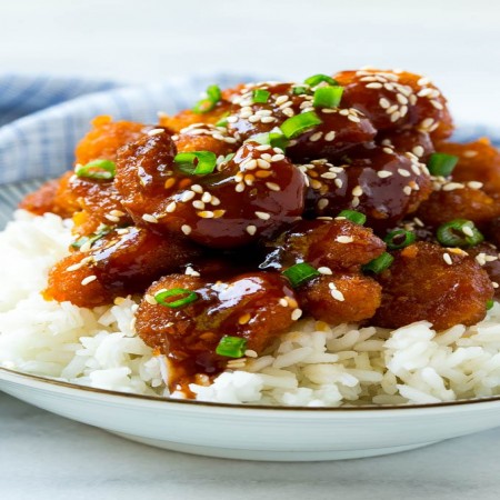 Deep fried and glazed with one of our house made sauces. Comes with stir fried mixed vegetables, lo mein noodles, and fried or steamed rice. Property of We Deliver Cookeville Inc.