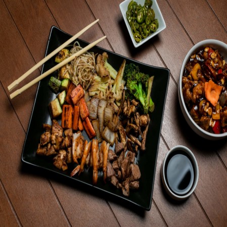 Hibachi grilled meat with a teriyaki style glaze. Comes with mixed vegetables, lo mein noodles, and fried or steamed rice.