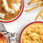 Includes mashed potatoes w/ gravy, individual side, biscuit and medium drink